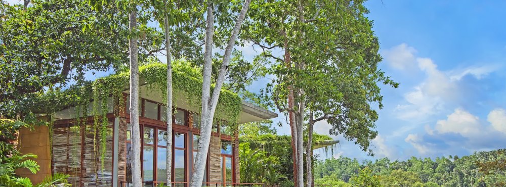 Interiors combine the warmth of local Jak wood with cooling natural granite, while furnishings fuse natural materials with softly coloured, locally made textiles. The open-plan Main House offers a communal space for dining and relaxation, with wide sunbathing terraces, a 21m swimming pool over the lake, and indoor and outdoor dining areas.
