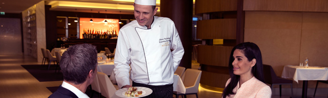 The Executive Chef brings with him immense experience from a long career with leading hotel brands including Ritz Carlton, Shangri-La, and Intercontinental. His team of skilled Sous Chefs, Demi Chefs, and Chef de Partie create superior haute cuisine dining served at an à la carte dining area. Menus are changed frequently and feature a choice of Arabian, Indian and international cuisine made to order at any time of day. The kitchen prepares all dining in-house using the freshest, locally sourced, seasonal produce. Guests will also be able to experience a unique five-course Emirati tasting menu, developed by chefs from Mezlai at the prestigious Emirates Palace Hotel in Abu Dhabi. A casual dining and bar snack menu is also provided.
