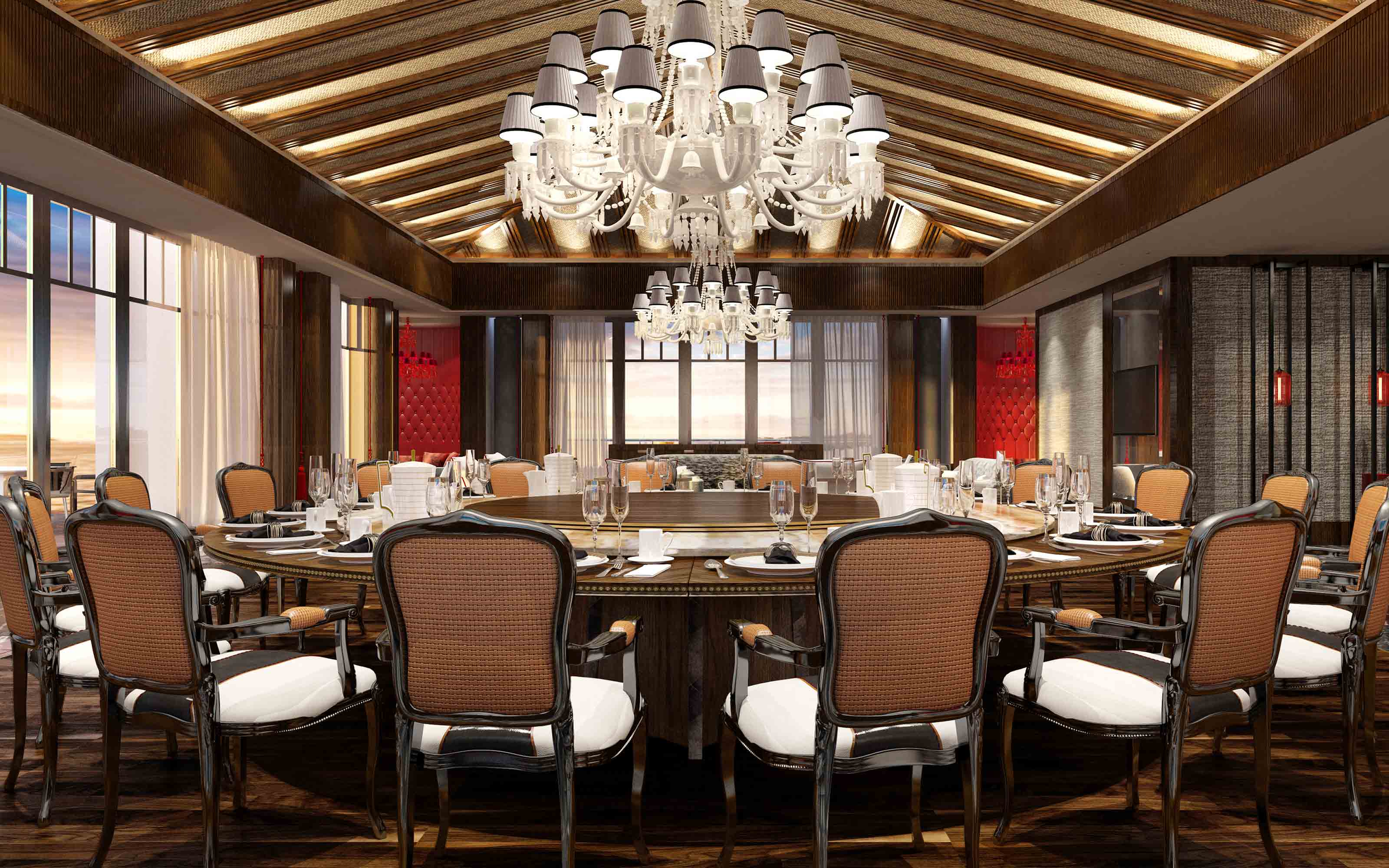Designed by Jean-Michel Gathy, who previously developed the award-winning One&Only Reethi Rah in the Maldives, the hotel is in line with the traditional Chinese architectural principle, ’round sky and squared earth, in harmony with nature’. This is evident in the lobby design which is shaped like a treasure basin with an indoor waterfall.