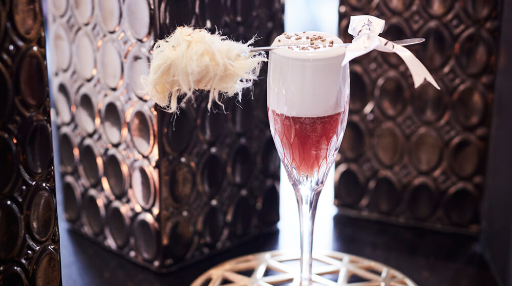 The 18th Century cocktail is inspired by French history and the Palace of Versailles gardens. “The deep red colouring with gold accents resembles the opulence of the 18th century, whilst the fairy floss pays homage to Marie Antoinette’s most famous hairstyle – the pouf,” Dasan adds.