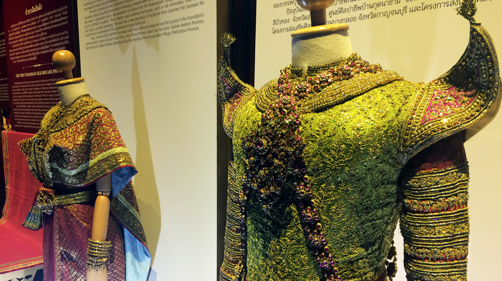 Her Majesty is one of the greatest patrons of Thai arts and crafts, and is particularly honoured for her role in the preservation and promotion of Khon. This high performance art brings together a raft of uniquely Thai skills, including silk brocade used in the costumes, the making of the elaborate masks and head dresses, and the dazzling accessories and jewellery.