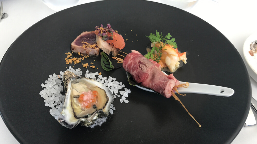 The menu had a distinctly maritime flavour, starting with Infinity Pacific seafood tapas before a Sri Lankan snapper curry with basmati rice and aloo chop, followed by a sweet taste of Shaw River buffalo curds and treacle, coconut crunch and pineapple.