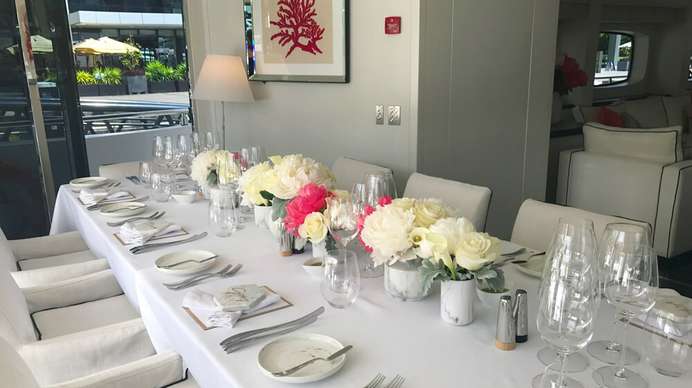 Sydney’s only Italian-built alloy superyacht available for charter marked her arrival in style with a harbour cruise on Tuesday 21 November. Infinity Pacific welcomed an intimate group, including Signature Media CEO & Group Editor, Cathy Wagstaff, for lunch on the water. Guests enjoyed a signature tasting menu by celebrated chef Peter Kuruvita, who curates the onboard culinary offerings, and were delighted to find that Peter was present to guide them through the three-course sit-down lunch.