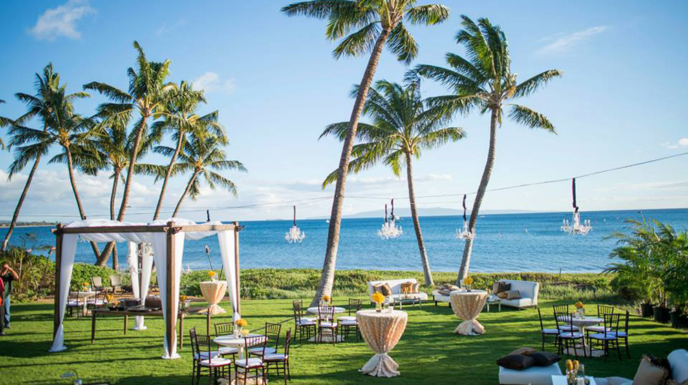 A one-of-a-kind event space, Hale O Aloha is one of the premier function spaces on Maui. Meaning “The House of Aloha” in Hawaiian, Hale O Aloha boasts a grand ballroom accommodating 200 guests indoors, and 350 guests in the combined indoor and outdoor areas.
