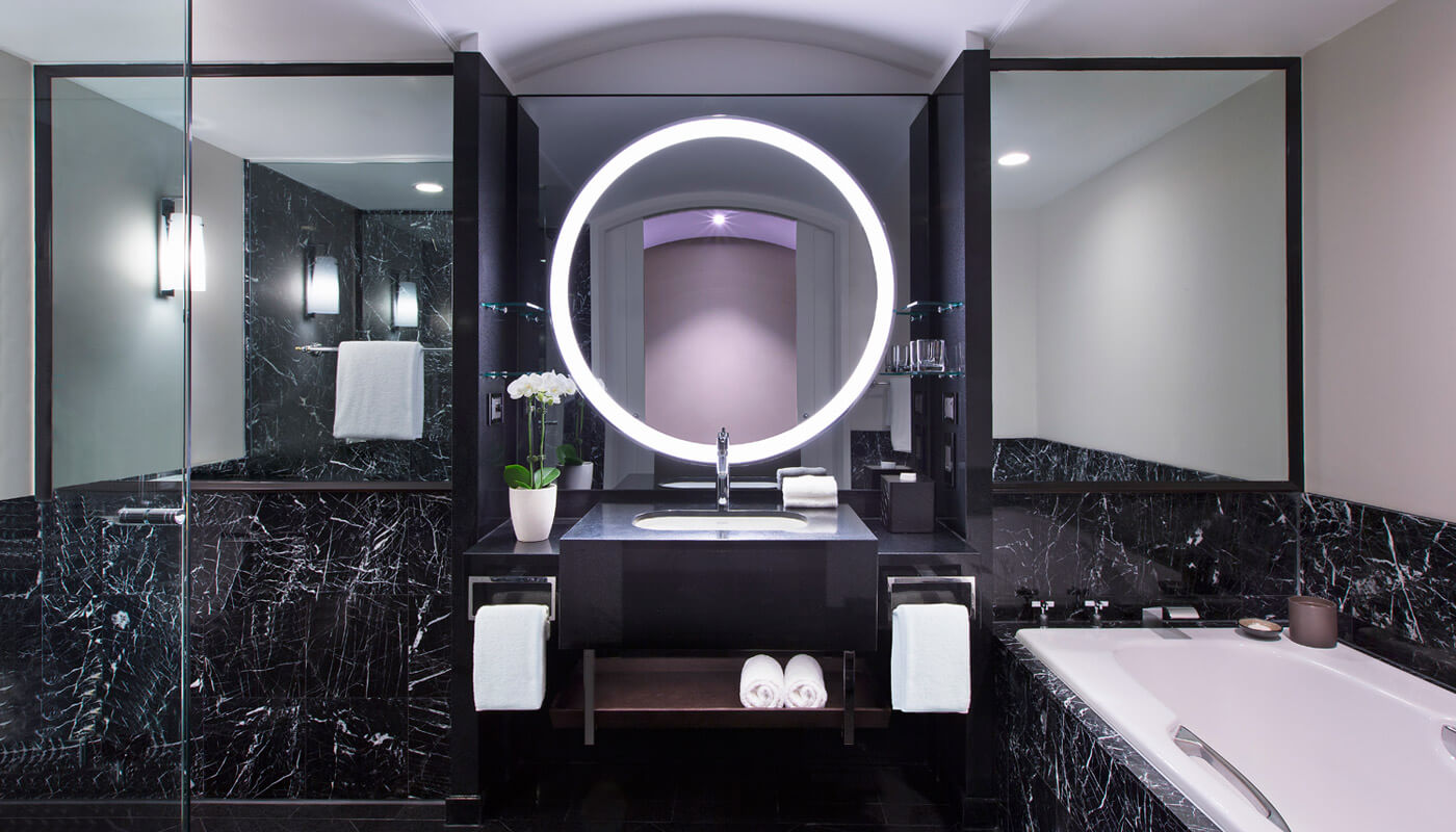 Fresh from the hotel’s $40 million renovation, the 70-square-metre Grand Executive Suite combines modern design with classical elegance. The lounge and study area is open and inviting with a plush L-shaped grey lounge under the large windows overlooking Hyde Park. There is a large desk with ample powerpoints for business travellers. Double doors open onto the bedroom with a king bed backed by a new stitched leather bedhead, stretching to the ceiling, and chaise longue to enjoy the view of St Mary’s Cathedral. Signature Luxury Travel & Style is the exclusive in-room magazine. The large marble bathroom is connected via a walk-in robe with three mirrors, a large bath and shower. All suites include complimentary access to the Sheraton Club Lounge.