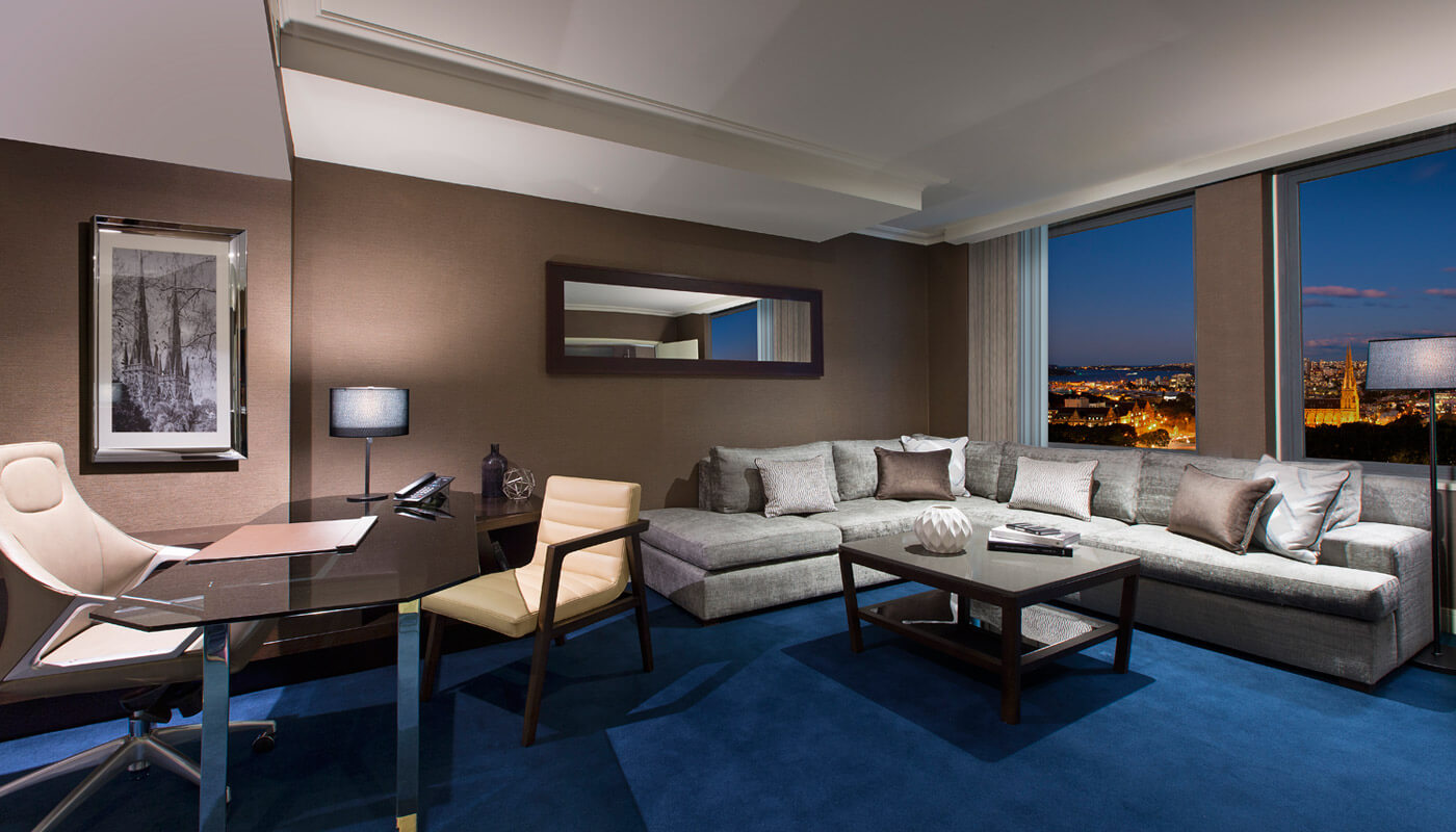 Located on level 21 is Sheraton on the Park’s Royal Suite. The 205-square-metre suite has a guest bathroom, eight-person dining room, work area and living room with a five-metre-long window seat. My favourite feature is the oval bathtub with views of Sydney Harbour. The king bedroom has balcony access and floor-to-ceiling windows to enjoy the view from bed.