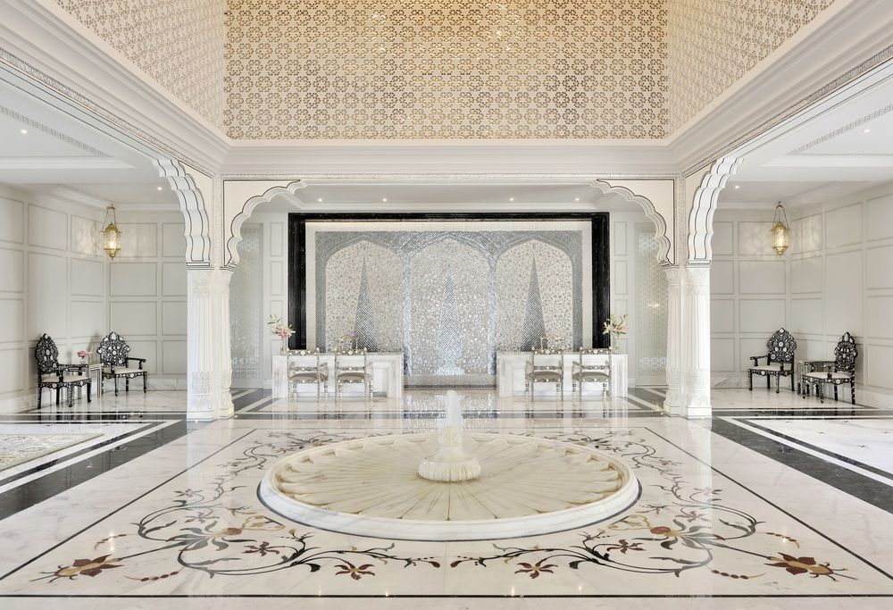 The JW Marriott Jaipur is inspired by the regal palaces of Rajasthan featuring grand arches, fountains, intricate Jaali metalwork, delicate inlays and hand-painted patterns in a classical blue-and-white palette. The resort features 200 guest rooms, villas and suites, including Royal Terrace Rooms, Royal Courtyard Rooms and Royal Pool Villas with private plunge pools, as well as two-bedroom Palace and Presidential Suites.