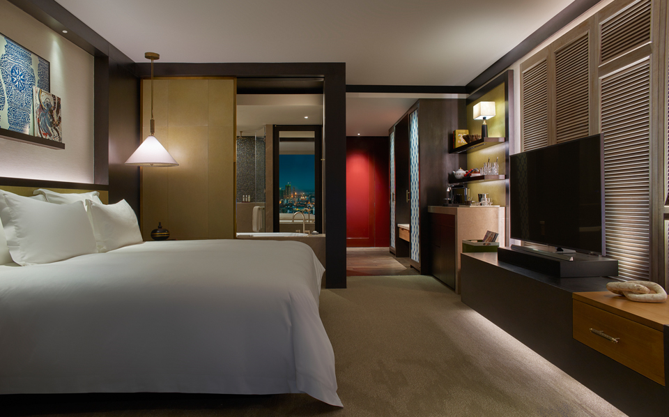 Gastronomes will be spoilt for choice with four dining venues, with innovative and cutting- edge fare spanning Asian, Japanese and European cuisines. The warm Brasserie Louis situated on level 35 instantly presents a panoramic vista of the city skyline and Mekong River from floor-to-ceiling, wrap-around windows, and features French classic comfort foods and regional Cambodian favourites in a casual yet elegant environment. The Living Room is residential-like retreat with a relaxed vibe and cosy corners – a refreshing spot for breakfast, snacks during the day or cocktails and appetisers as day turns to night. Iza is a Japanese izakaya-style restaurant that invites guests to linger, sample course after course, and socialise over a lively meal with robata-yaki and irori charcoal grill open kitchen with counter seating as the main feature. The highlight of the dining journey is Sora – translated as “sky” from Japanese – the highest bar in Phnom Penh, and perched on a cantilevered terrace on level 37 with unobstructed views of the Cambodian capital as its spectacle.