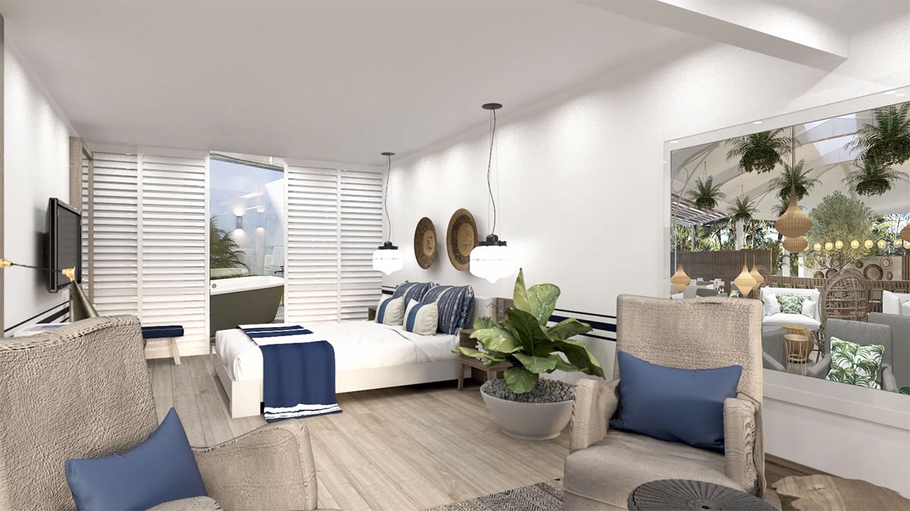 All 186 rooms, including 89 suites and villas, open to sea views and airy verandahs, some with outdoor baths or sundecks edged by the resort’s private cove. Fitted with LUX* Sleeptight mattresses and highest-quality refined Egyptian cotton linens, every room has been intended for comfort and the best night’s sleep. Huge doors treat the living spaces to lots of natural light and the generous dressing space enhances the loft-style feel. Spindrift-white bedrooms are enhanced with unexpected home-from-home touches, such as succulents in ceramic pots. Handwoven African baskets, wicker tables and smooth floors ensure all bedrooms are as comfortable as can be. Geometric encaustic tiles add graphic-design personality to ensuites and many bathrooms have reclaimed bespoke Victorian bathtubs. The top-level accommodation is the signature two-bedroom LUX* Villa, which sleeps a family of four in a beautiful blend of original, modern styling and classic retro chic.