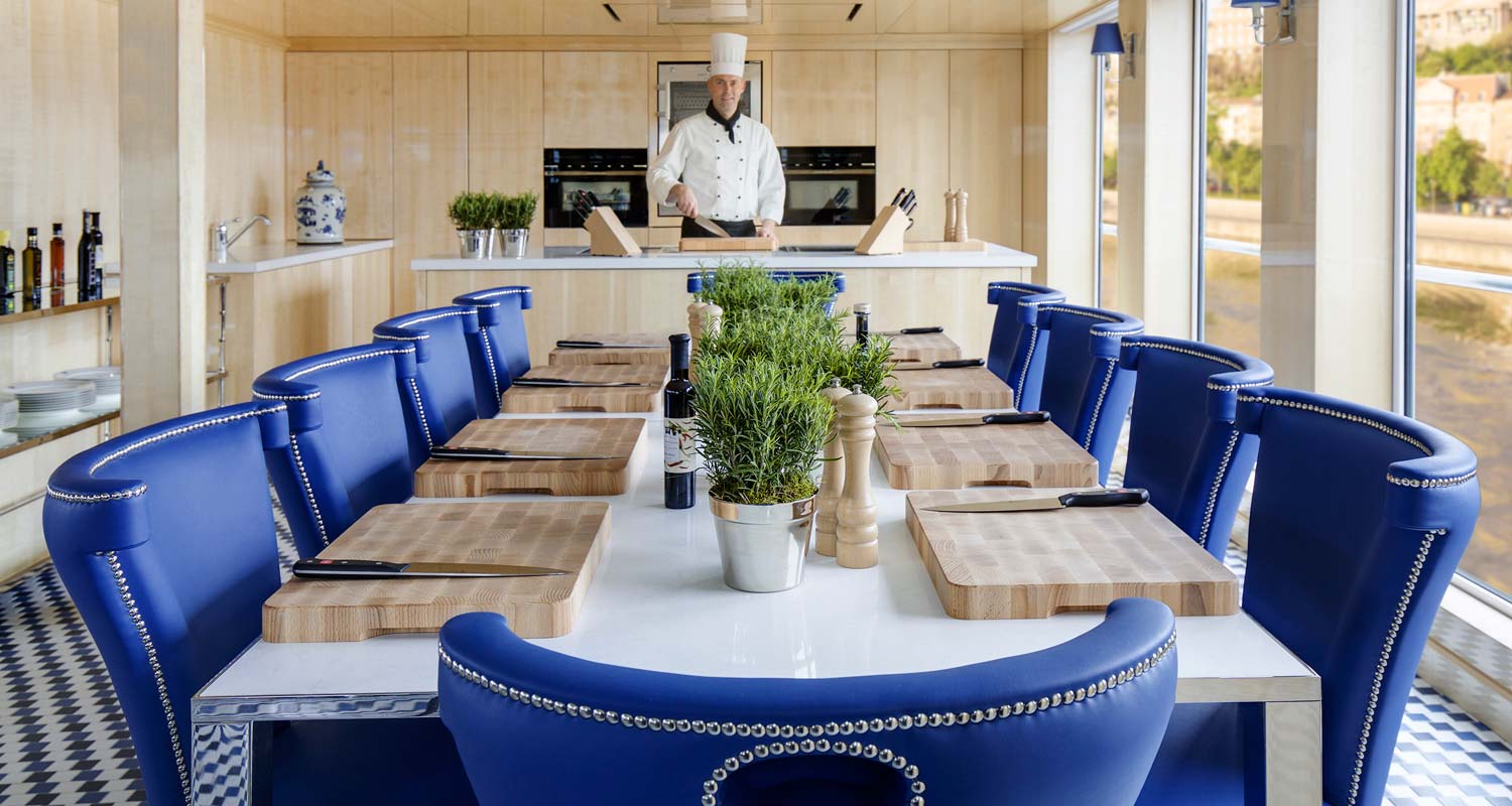 The ship offers four dining options all inspired by famous Austrian composers, including Mozart’s, the ship’s main restaurant; Wolfgang’s bar and lounge and newly added Schubert’s and Max’s. For guests seeking an immersive culinary experience, Max’s restaurant offers intimate cooking classes where guests can create local European cuisines alongside the chef. Menu highlights at Max’s include broccoli coleslaw, regional Bohemian bread, pudding dumplings and homemade apple strudel. Schubert’s, an 18-seat café located at the bow of the ship, offers guests shared plates from lunch through dinnertime. The cosy Austrian-styled eatery features menus reflecting the cuisine of the ship’s destinations, including brisket bouillon, Wiener Wurst with mustard, and an Austrian Kaiser Burger.
