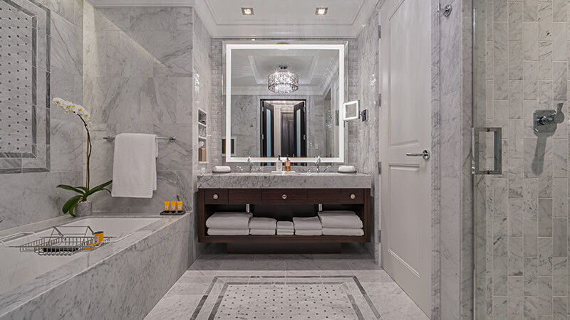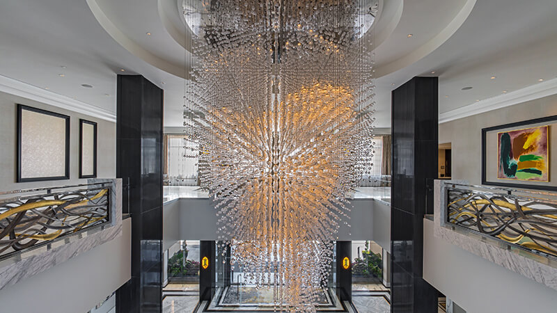 Upon entering the three-story glass lobby, guests will be mesmerised by a grand chandelier inspired by the Dubai Opera House. The cascading fixture was custom built in the Czech Republic with 15,719 crystals, including 739 Swarovski crystal balls, and 1,428 LED light sources, and shipped to Houston for installation.