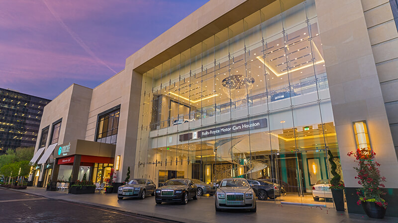 The master-planned mixed-use project also features 11 stories of office space as well as a designer retail boutique, chic salon, spa, and fitness centre. In addition to the two-story Rolls Royce showroom located inside the hotel, an on-property dealership, Post Oak Motors, offers Bentleys and Bugattis available for purchase or just admiring.