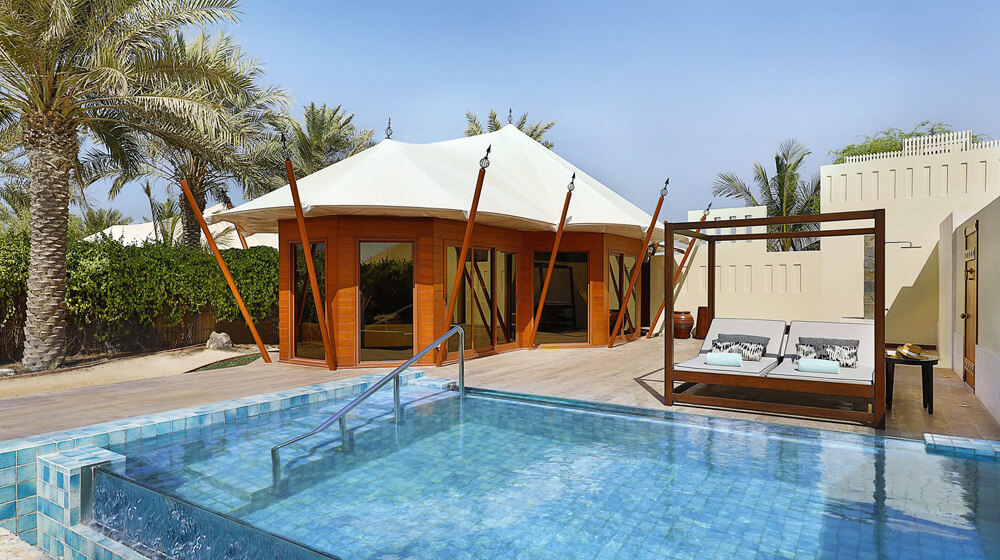 When Ritz-Carlton went into Ras al Khaimah it actually signed two luxury hotels, or rather, two amazing tented camps. The Ritz-Carlton Ras Al Khaimah, Al Wadi Desert is 20 minutes’ drive from the coast in the eternal dunes of Wadi Khajeja, a 500-hectare national park. Arrive, and you go into a covered lobby courtyard dominated by a 300-year-old olive tree. The property’s owner, HH Sheikh Ahmed bin Saud bin Saqr Al Qasimi, specifically wanted a tree from Spain and this one, with its original soil and a horticultural ‘nanny’, was brought by ship through the Suez Canal, a three-month voyage in all.