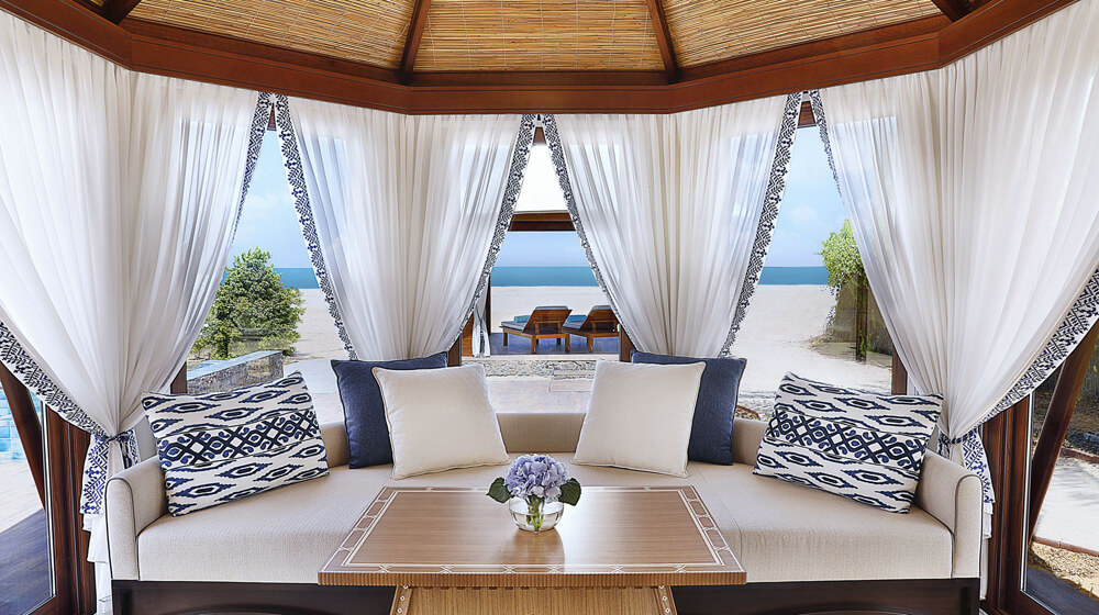 Ritz-Carlton’s other tented beauty in this emirate is The Ritz-Carlton Ras Al Khaimah, Al Hamra Beach. This merely has 31 luxury tented villas on a narrow L-shaped man-made promontory off Ras Al Khaimah. It was reopened only two months ago and already it is understandably popular as a weekend retreat for people in Dubai, just under an hour’s drive away. Expats and locals, adult couples and family groups alike flock here to get away from reality. Once you arrive at the resort’s air-conditioned welcome post, you are given the option of continuing to your tent by buggy, to save time, or, more romantically, by boat.