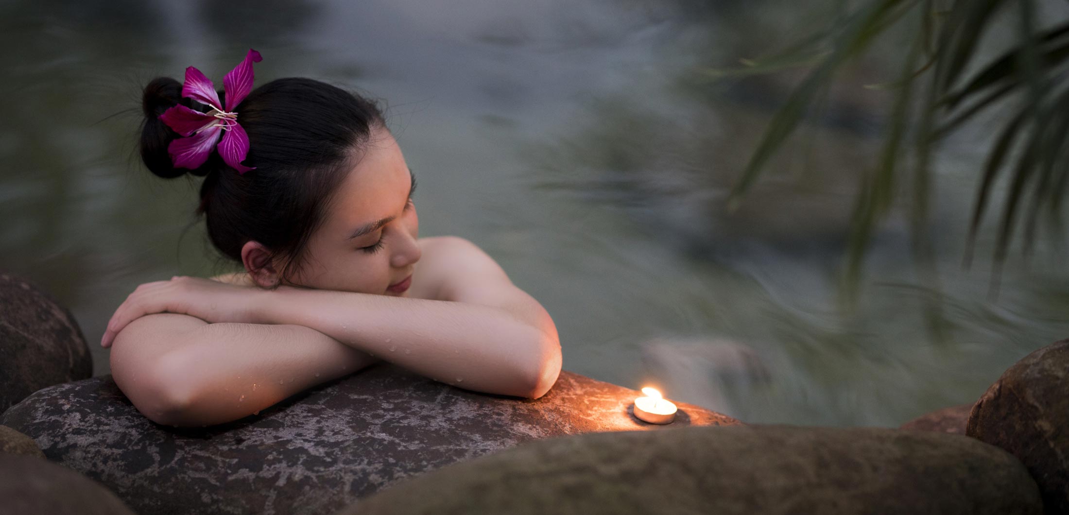 At Alba Wellness Resort, guests may take an Onsen bath in the early morning before breakfast, in the late evening to ensure a good sleep at night or just to enjoy a dip during the day and savour the scents and sounds of the forest. A glass of Alba mineral water or cold hibiscus tea is served after the bathing ritual.