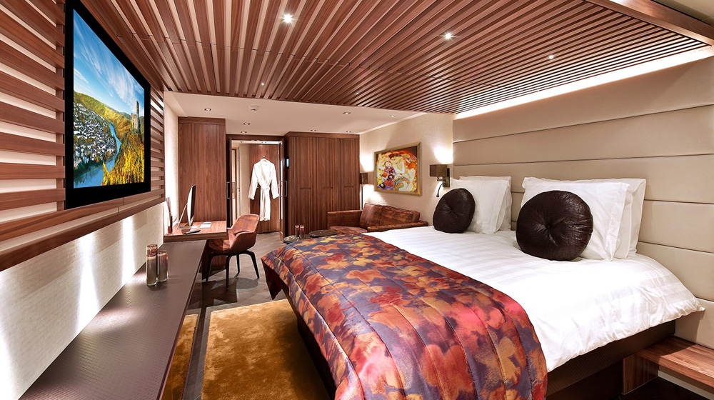 She will offer the most spacious and comfortable accommodation on the Danube with 53 suites ranging from 33 square metres to a luxurious 66 square metres, all offering full-width step-out balconies. Each one will include a sizeable marble bathroom, many boasting double sinks as well as a walk-in multi-jet shower and separate bath.