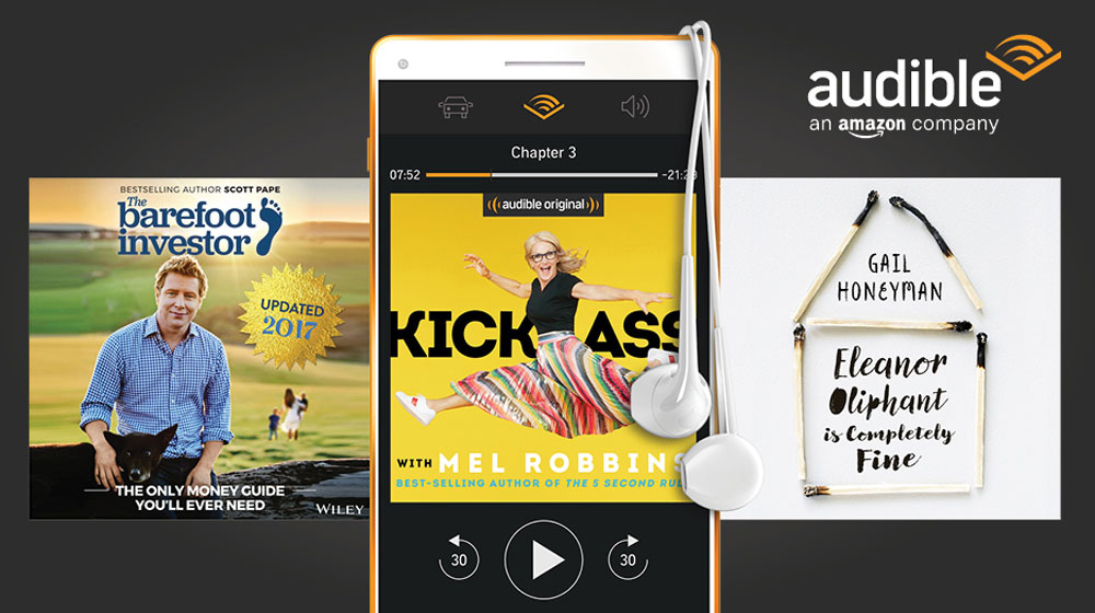 • One free audiobook per month for the first three months from the full Audible.com.au library of downloadable audiobooks for new Audible customers, featuring new content including The Barefoot Investor written and narrated by Scott Pape and Kick Ass with Mel Robbins written and narrated by motivational speaker, Mel Robbins.