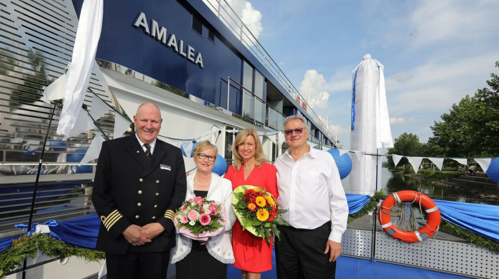 AmaWaterways, in partnership with APT, christened its newest river cruise ship, AmaLea, as part of a celebration for the new vessel in Vilshofen, Germany, on Saturday.