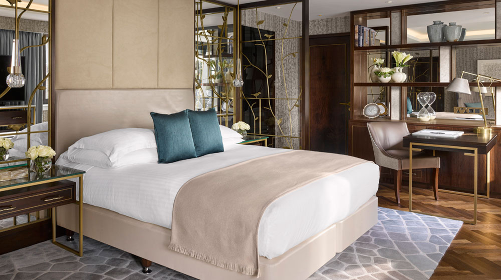 Artwork and accessories draw on Hyde Park’s equine traditions and the historic location of the hotel. Bespoke stitching details of the Plane, the tree that populates and represents London’s Royal Parks, are incorporated into the headboard design. The green landscape of the park-inspired textures, patterns and themes within the carpet designs and artworks, such as the bespoke carpet, designed and developed with Tai Ping Carpets.