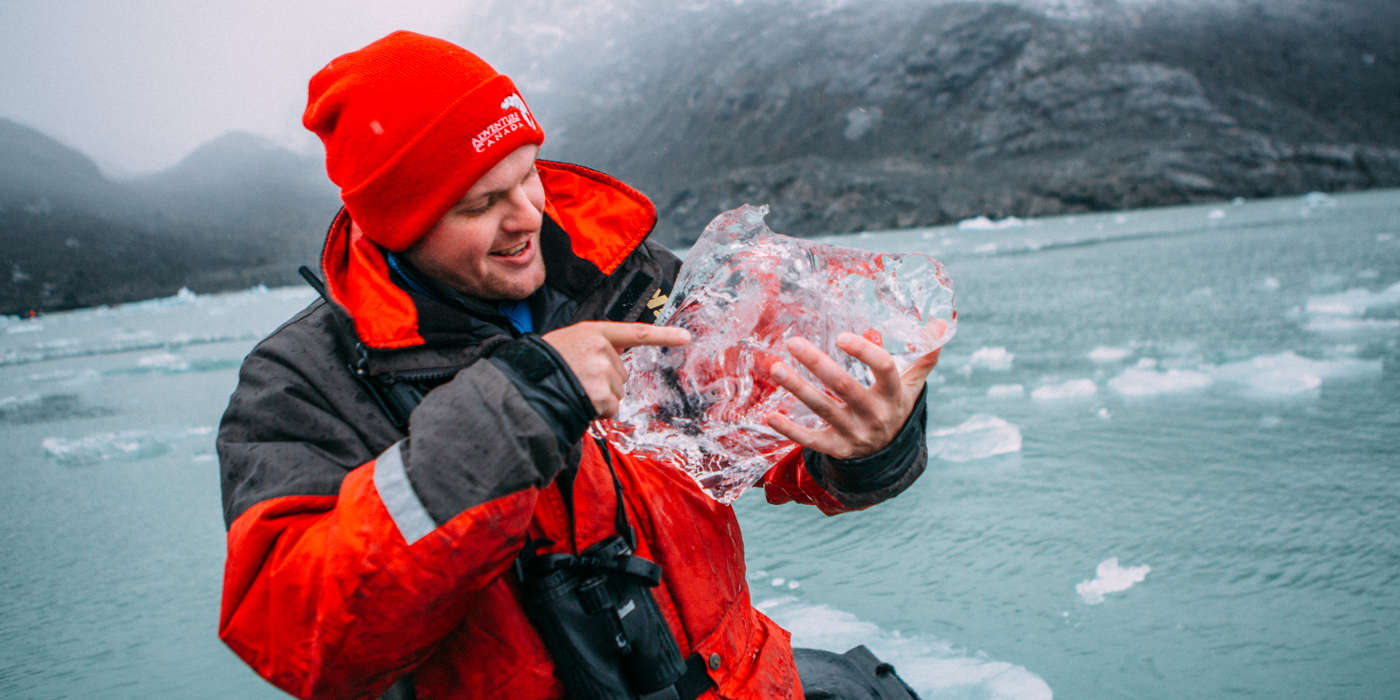 MJ himself is an expert Zodiac driver, able to drive both with his left and right hand (a necessity after once breaking his preferred wrist two days before an expedition) and expertly read and react to the ice and waves through fjords, icebergs and glaciers.