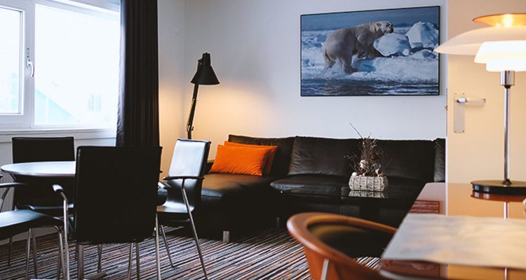 The challenge, says Marianne Holdgaard Rasmussen, is that Nuuk operates on around-zero unemployment, and finding staff means relying on the cameraderie of those already in the team. She also has to staff the hotel’s two restaurants, which include a franchised A Hereford Beefstouw, as in Adelaide and Melbourne as well as in 12 locations in Denmark – the beef mostly comes from Australia (best-seller is ribeye on the bone, carved tableside), but if you want local go for red Löjrom roe with blinis, followed by Greenland redfish, or musk ox or reindeer fillet, and dessert has to be vanilla ice-cream with raisins in rum, ginger, whipped cream, powder coffee, and what is described, both in English and Greenlander, as ‘Caloric’ liqueur. Really, Hotel Hans Egede, still privately owned by its Danish founders, Carl Juhl and Helge Tang, is a most unforgettable, and agreeable hotel.
