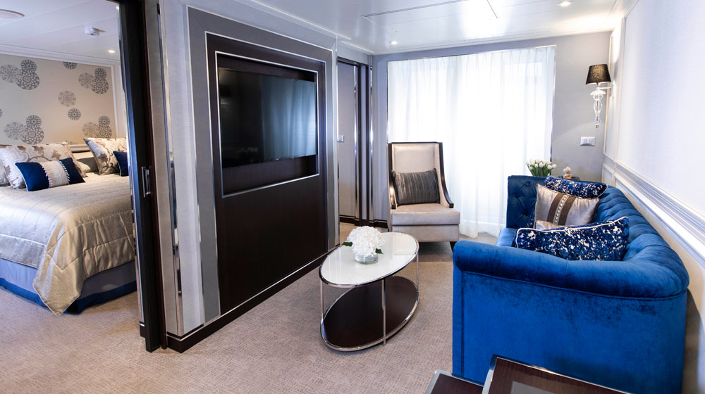 Seven Seas Splendor is an all-suite, all-balcony ship, offering up to 750 guests the most elegant accommodation. Guests will enjoy distinctive public spaces as well as 375 beautifully appointed suites ranging from the 28-square-metre Veranda Suite, to the lavish 413-square-metre Regent Suite. With a private in-suite spa with steam room, a custom heated spa on a private balcony, and ceramic-heated lounge beds, the Regent Suite also comes with a butler as well as a car and driver awaiting excursions in every port.