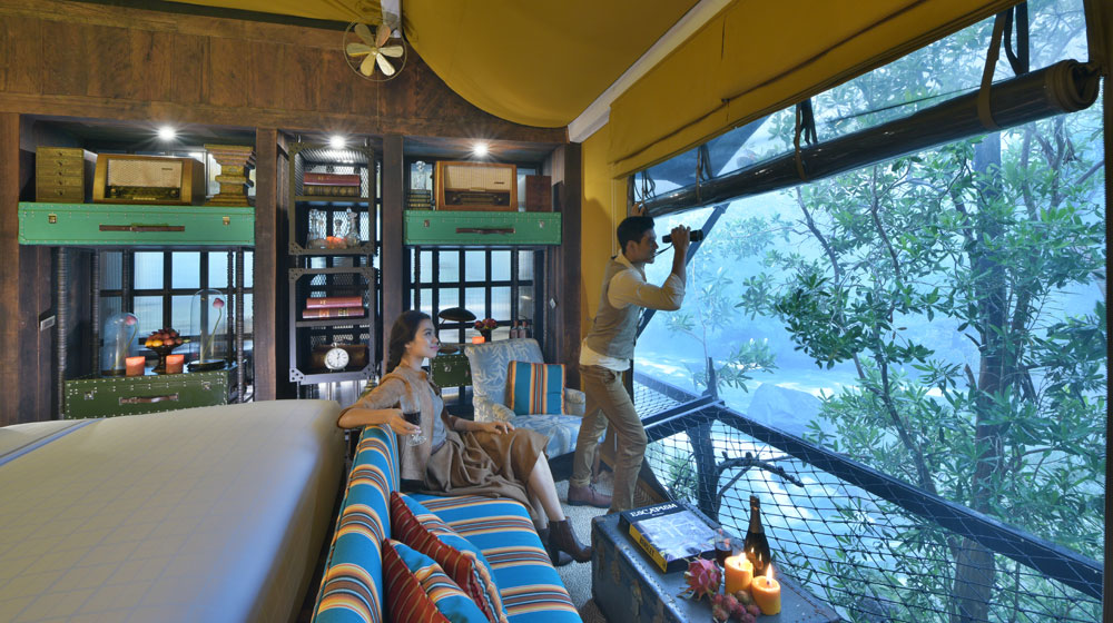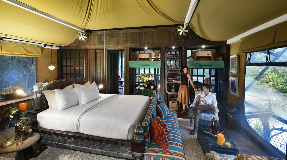The 14 one-bedroom tents (100-square-metres) and one two-bedroom tent (140-square-metres) have been meticulously designed to invoke the grandeur of what it would have been like to be on a luxury safari in the jungles of Cambodia with Jacky O’ who travelled throughout the Kingdom with King Sihanouk in 1967.