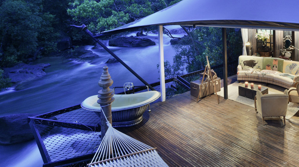 While not adventuring and exploring this incredibly diverse region, guests can relax and enjoy their luxurious tents and camp facilities including the Waterfall Restaurant, Landing Zone Bar and Boulders Spa featuring chemical-free products by Bensley’s Khmer Tonics.