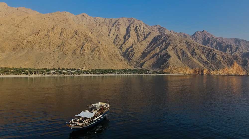The Dhahab’s three-day itinerary starts with a cruise to Haffa and Sanat bays. On day one, the GEM (Guest Experience Maker) will recite ancient folklore tales while guests discover the myth of the dinosaur footprint. Leaving Sanat, the cruise continues along Lima Bay to anchor in Khor Kabahl for lunch where a leisurely afternoon is spent swimming, kayaking, snorkelling, fishing or taking a speedboat tour along the majestic fjords.