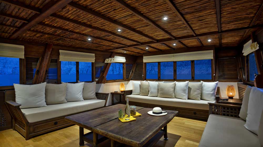 While sailing through the waters of Haffa, Sanat, Lima, Khor Kabahl and Khor Habaleen, guests will enjoy the beauty of an underwater world with tailor-made dive experiences for novices and experts alike. Those who prefer above-water activities can tour the fjords in a speedboat or kayak (both single and twin), or try snorkelling, hand-line fishing or water-skiing. Inside the Dhahab, there’s a wide selection of games and a relaxing private lounge in which movies on demand are waiting. At night, the daybeds on the upper deck and the captain’s deck provide a picturesque platform for stargazing.