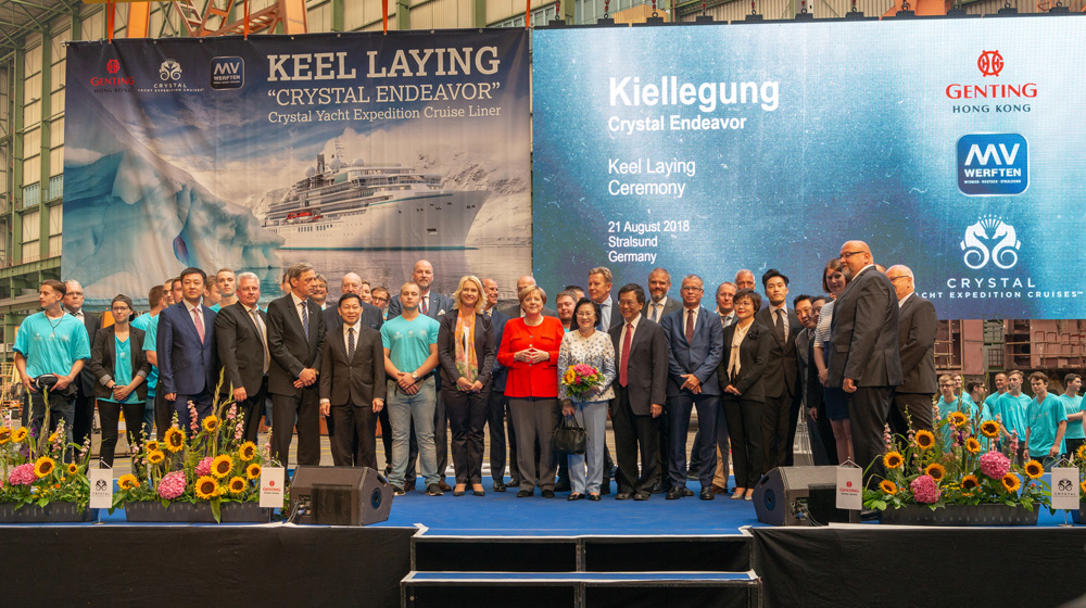 Crystal Yacht Expedition Cruises celebrated the latest important milestone in the construction of Crystal Endeavor as the keel was laid at MV WERFTEN’s Stralsund shipyard for the company’s first luxury expedition yacht.