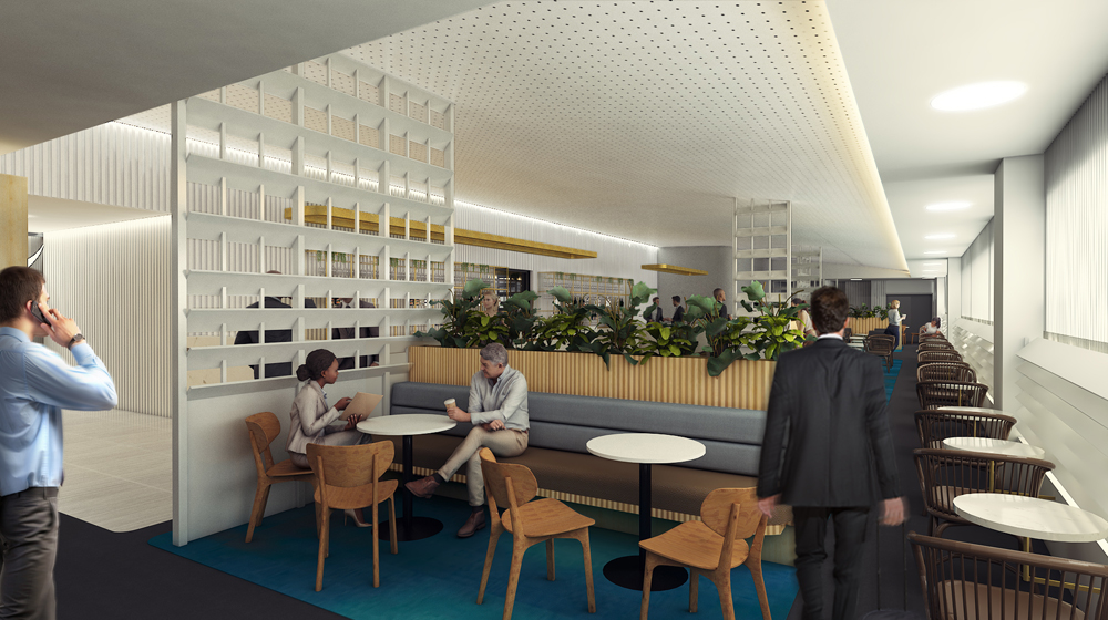 Lead image: rendering of the Brisbane International Lounge expansion.