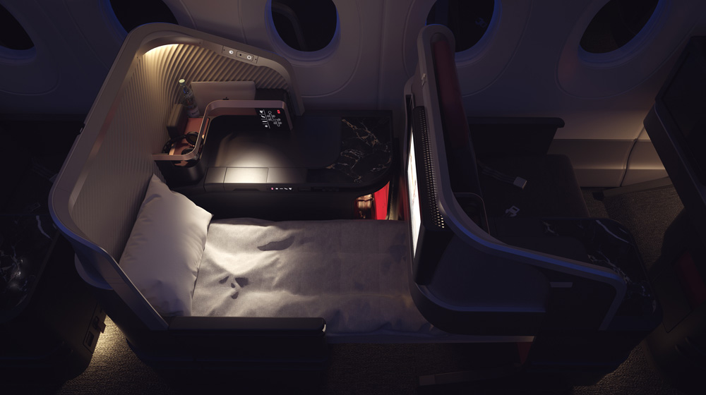 • A new Premium Business seat and service that focuses on privacy and rest. Each Wide Thompson seat will have direct aisle access and offer seating options for both individuals and couples as well as a full-flat bed. It will also feature the latest generation in-flight entertainment with an 18” personal screen and have ample space for personal items