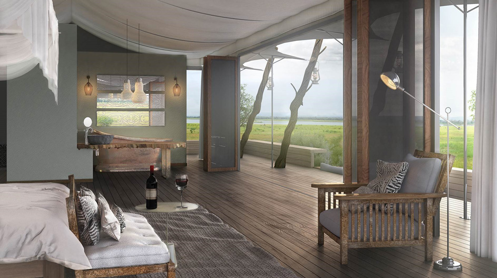 Overlooking the Zambezi River and the spectacular Rift Valley escarpment in the distance, Chikwenya will open as a six-tented camp. The canvas tents are erected on low wooden decks and pine walkways link them to the raised main area. A lounge, dining and bar area offer a place of hospitality and relaxation, and a pool with deck and fire place offer alternate spaces to enjoy the scenery and passing wildlife.