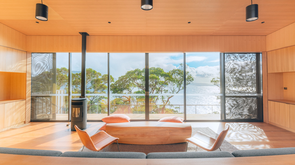 Three Capes Lodge Walk’s Crescent Lodge and Cape Pillar Lodge offer unrivalled and dramatic views of the Tasman National Park in every direction. Providing the perfect fusion of sustainable living, creature comforts and contemporary design, the lodge draws inspiration from the rich cultural offerings of the region. Large sliding doors in the living and communal spaces invite the outdoors in, with simple earth-toned furnishings and natural exposed timber joinery made from trees removed during construction. The lodges feature seven double/optional twin rooms with floor-to-ceiling windows to continue the immersive experience.