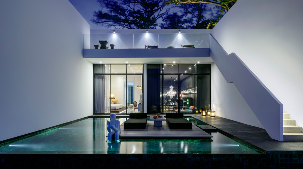 The enduring design philosophy of The Library is that of minimalism and The Writer subverts that narrative with a play of contrasts: a merging of flamboyant interiors and sharp-lined exteriors, a juxtaposition of the modern and the exotic, and a melting pot of Western and Eastern sensibilities.