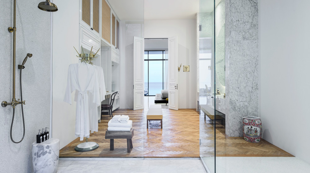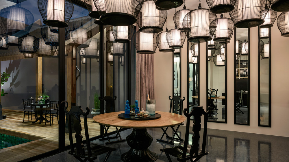The enduring design philosophy of The Library is that of minimalism and The Writer subverts that narrative with a play of contrasts: a merging of flamboyant interiors and sharp-lined exteriors, a juxtaposition of the modern and the exotic, and a melting pot of Western and Eastern sensibilities.