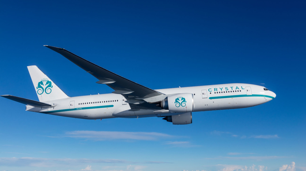 The only twin-aisle aircraft private plane, Crystal Skye is larger than any global private jet tour travel option and seats just 88 passengers in a Boeing 777 that was conceived to carry 300.