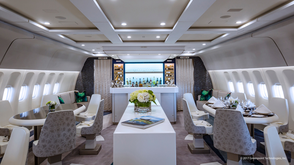 Designed for maximum personal space and ergonomic comfort and convertable to 180-degree lie-flat beds, the expansive social lounge with stand-up bar fosters friendly camaraderie among luxury travellers. International cuisine will be prepared by a dedicated chef in two state-of-the-art galleys, and paired with a complimentary selection of wines, champagnes, beers and spirits.