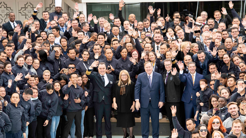 Lead image: The Celebrity Executive Team were also in attendance along with shipyard officials, including General Manager Laurent Castaing, and 1,377 crew members from 72 different countries.