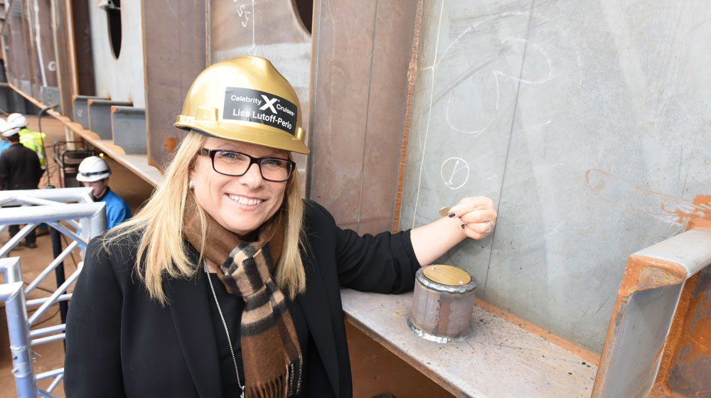 Royal Caribbean Cruises Ltd.’s Chairman and CEO, Richard D. Fain, and Celebrity’s President and CEO, Lisa Lutoff-Perlo, hosted a ceremony aboard Celebrity Edge while docked in the Chantiers de l’Atlantique shipyard in Saint-Nazaire, France.