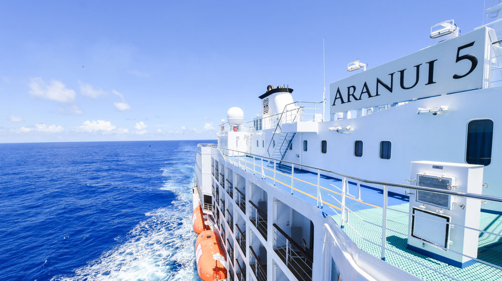 Aranui 5 features a restaurant, two conference rooms, lounges, a library, a boutique, a swimming pool, a gym, a spa and four bars including the popular Sky bar.