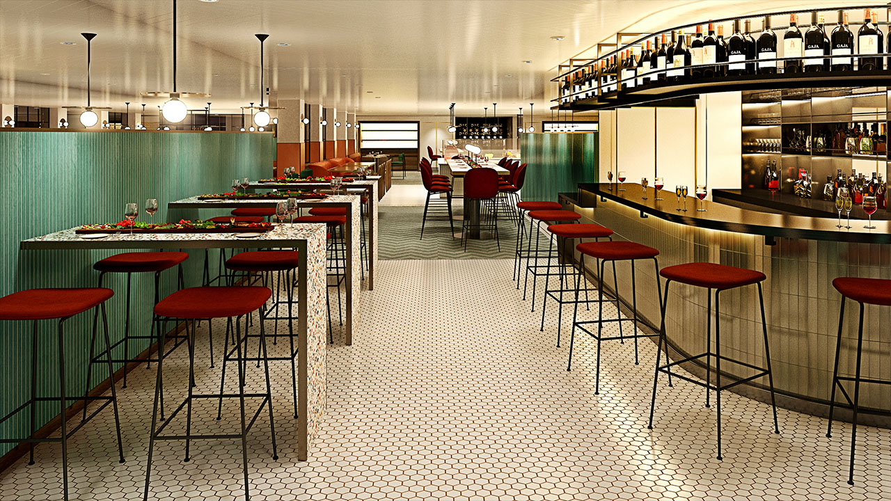 At the aft of the ship will be the aptly named Wake, serving steak and seafood, as well as a “Sommelier-led Magnum menu”.