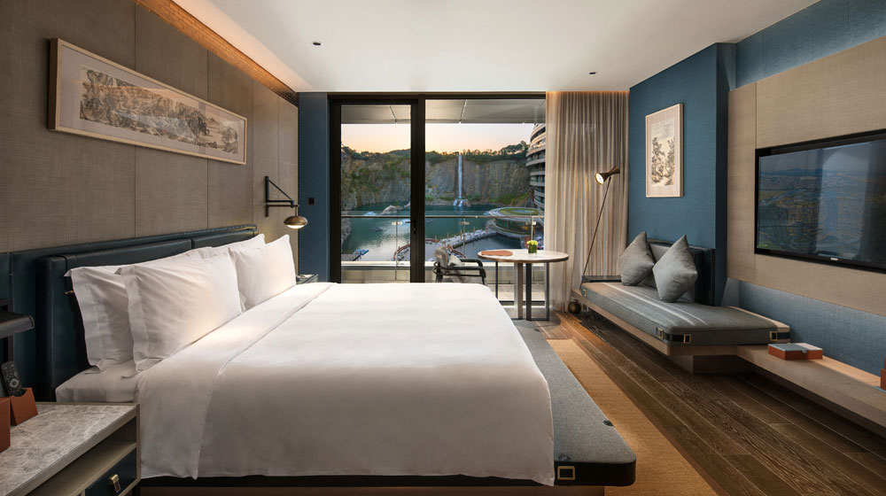 China is now home to one of the most unusual five-star hotels in the world following this week’s grand opening of the InterContinental Shanghai Wonderland. Located in the Sheshan Mountain Range in Southwestern Shanghai, the 336-room and -suite property has been built into the walls of an abandoned quarry.