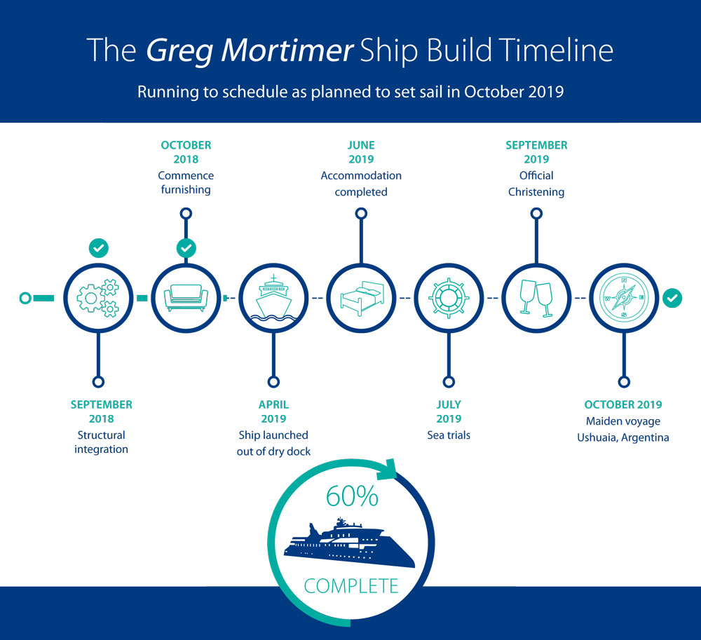 Aurora Expeditions Managing Director, Robert Halfpenny, said construction of the ship is progressing quickly, with more than 60% of the build now complete.