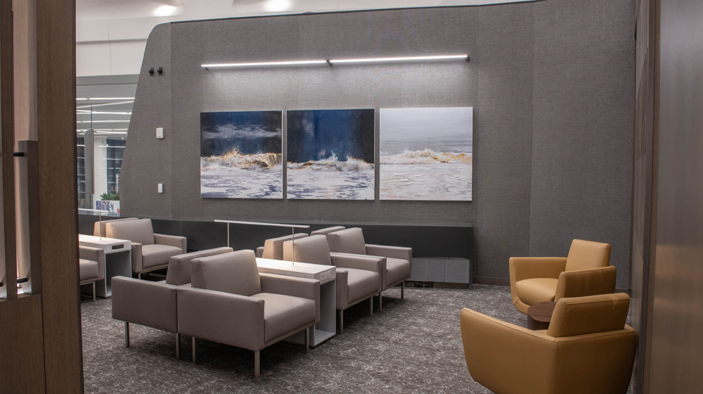 With capacity for up to 126 customers in an elegant space that overlooks the concourse, the new LaGuardia Maple Leaf Lounge combines Canadian design and art with metropolitan modern style. The 651-square-metre lounge features a self-serve bar, offering a wide selection of beverages (including Canadian wines and Lavazza specialty coffees), a business centre and comfortable seating with a view of the tarmac.