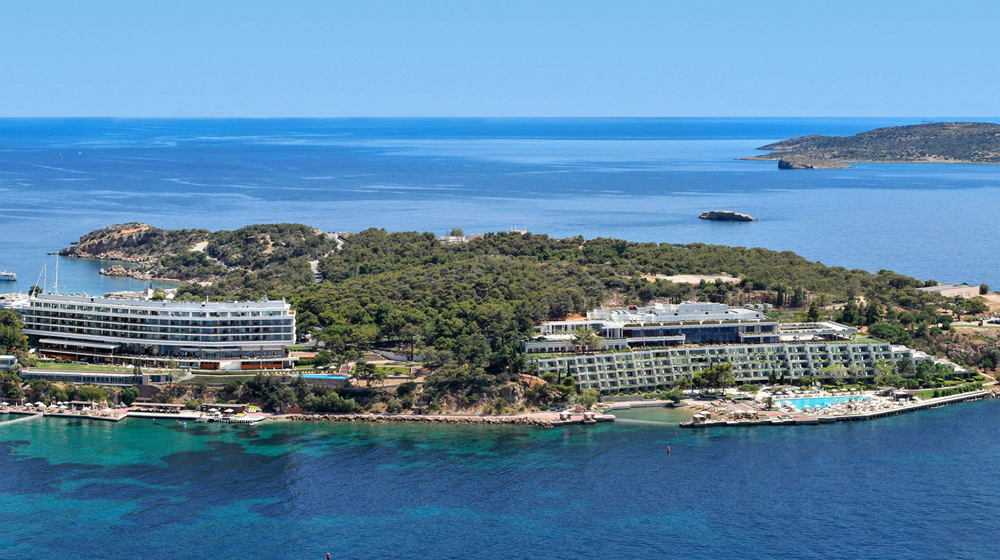 - Arion, a modernist building featuring stylish retro-chic design. In addition to guest rooms and suites, it is also home to four restaurants and the hotel’s spa. The Arion Duplex Penthouse stands out in the region, covering two floors and crowned by a spectacular rooftop garden and private pool with breathtaking Aegean views.