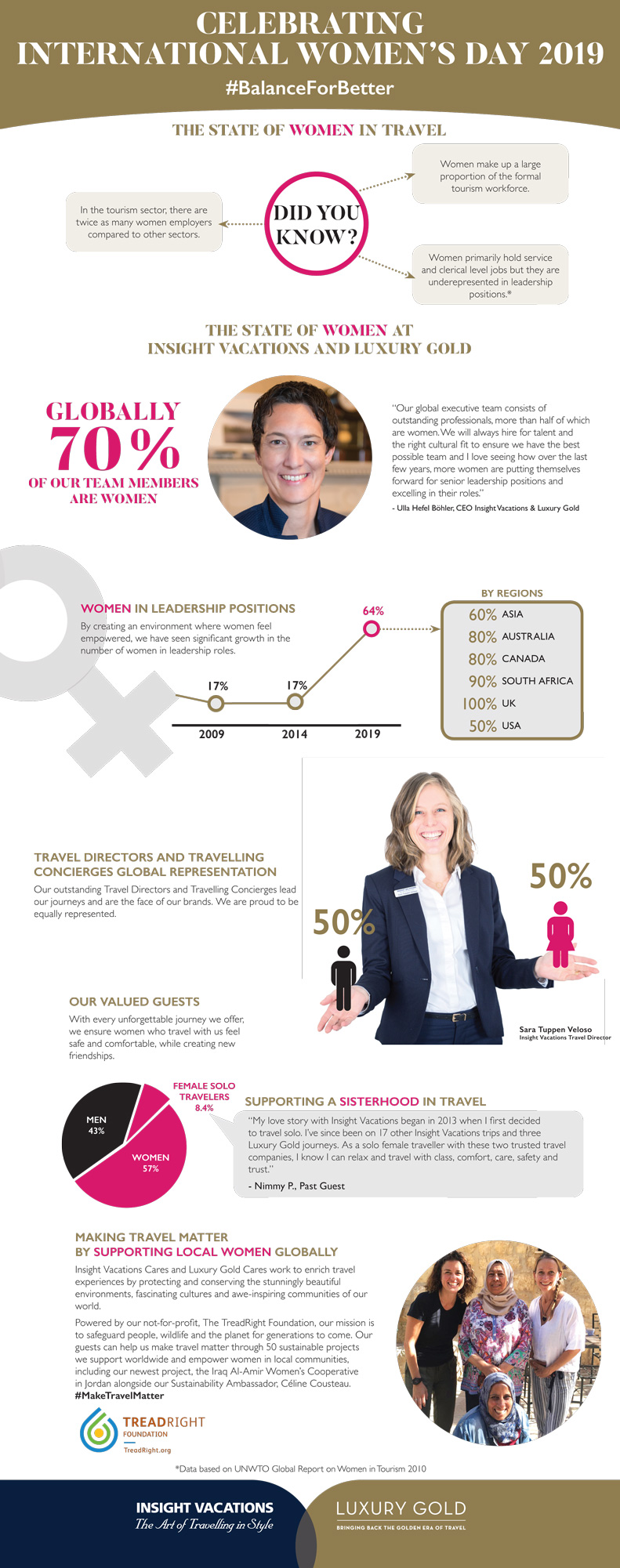 To mark International Women’s Day 2019, Insight Vacations and Luxury Gold have released a new infographic showcasing the State of Women in Travel.