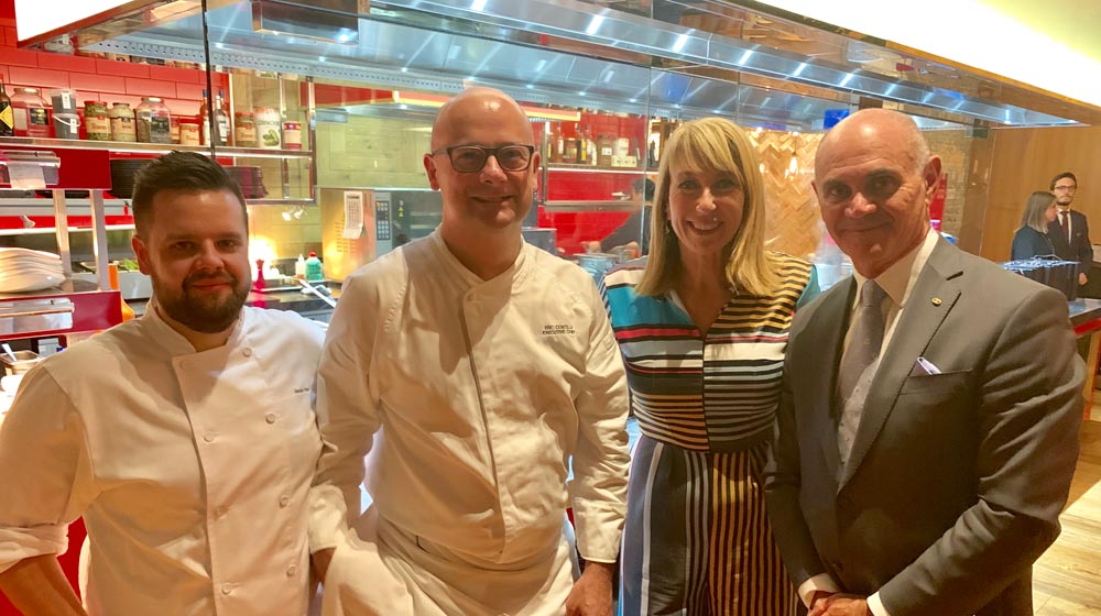 Lead image: Pictured at the event on Wednesday night from left are: Jordan Hajek, Chef de Cuisine; Eric Costille, Executive Chef; Maeve O’Meara, award-winning food and cooking author and Sofitel Sydney Darling Harbour General Manager, Greg Brady.