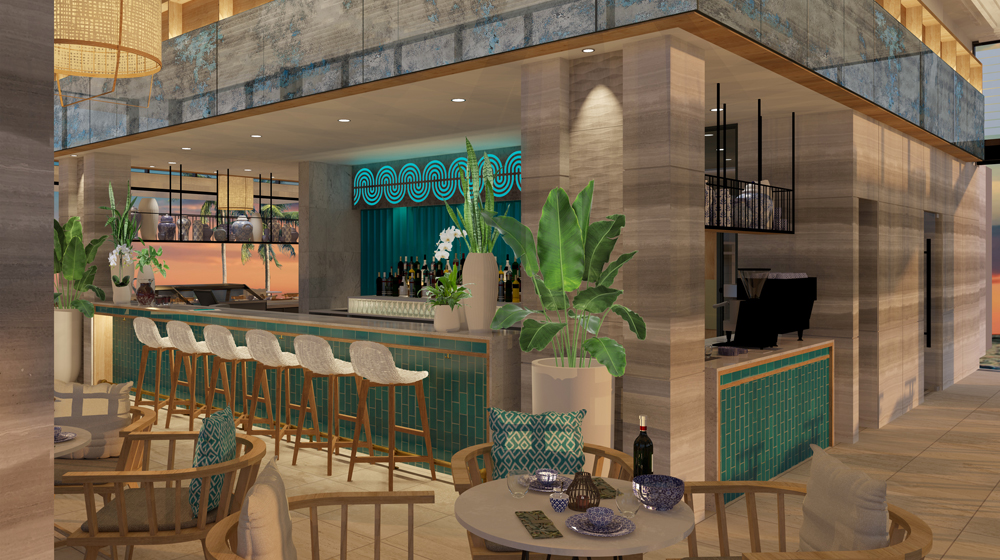 Bam Bam rendering – coffee servery - Bar Fifty – Set in the heart of the resort’s lobby, Bar Fifty is an international icon, having served sophisticated cocktails to globetrotters since the 1950s. Bar Fifty pays careful dedication to its distinguished past, reopening with twists on familiar favourites, classic cocktails, canapés and light bites within a lively hub.